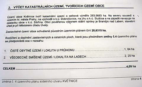 Klikněte pro více informací...  Stahování... 4. změna ÚP 2006 - výměra